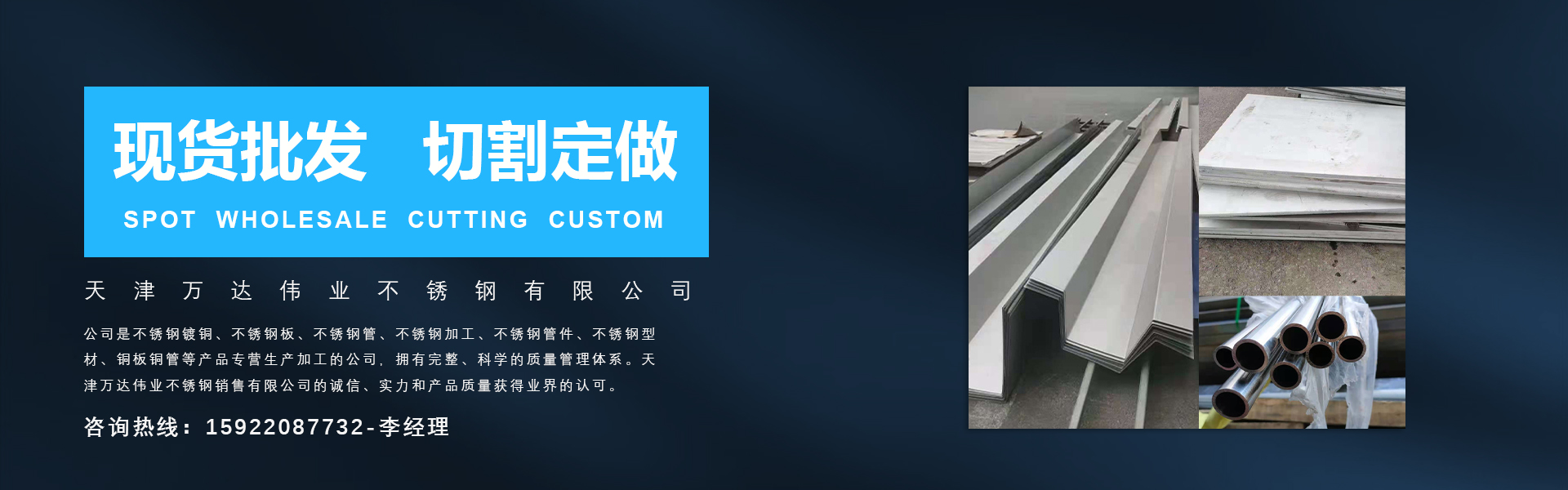 天津萬達偉業不銹鋼銷售有限公司 是不銹鋼板、不銹鋼管、不銹鋼加工、不銹鋼管件、不銹鋼型材,銅板銅管等產品專營生產加工的公司,擁有完整、科學的質量管理體系。天津萬達偉業不銹鋼銷售有限公司的誠信、實力和產品質量獲得業界的認可。歡迎各界朋友蒞臨參觀、指導和業務洽談。 因市場價格不穩定,價格詳情可聯系 ? ?路經理:15922087732/13920761367 ...